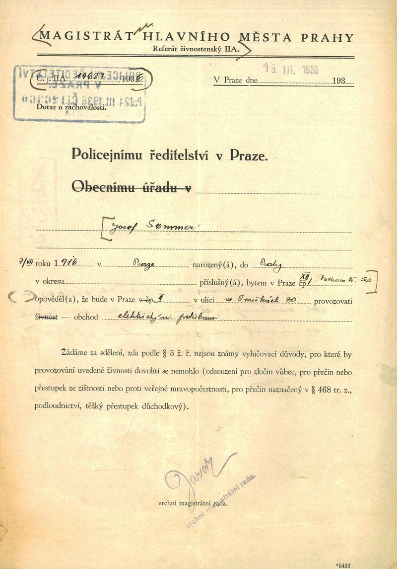 Národní archiv Praha > Policejní ředitelství v Praze > 1941-1950 > S > Sommer Josef