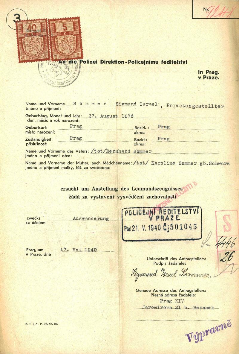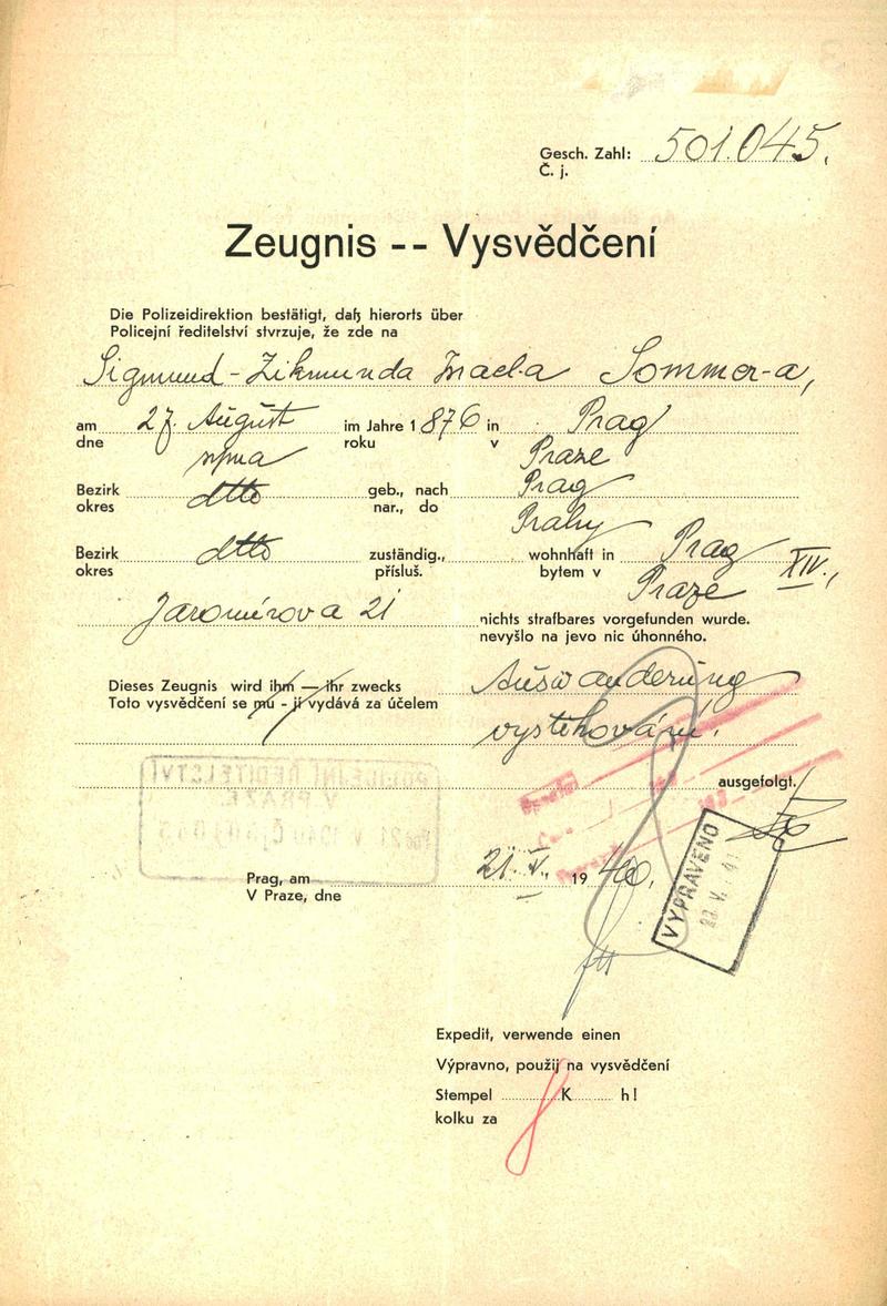 Národní archiv Praha > Policejní ředitelství v Praze > 1941-1950 > S > Sommer Zikmund