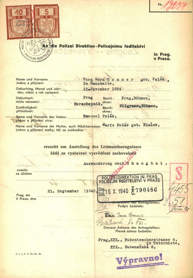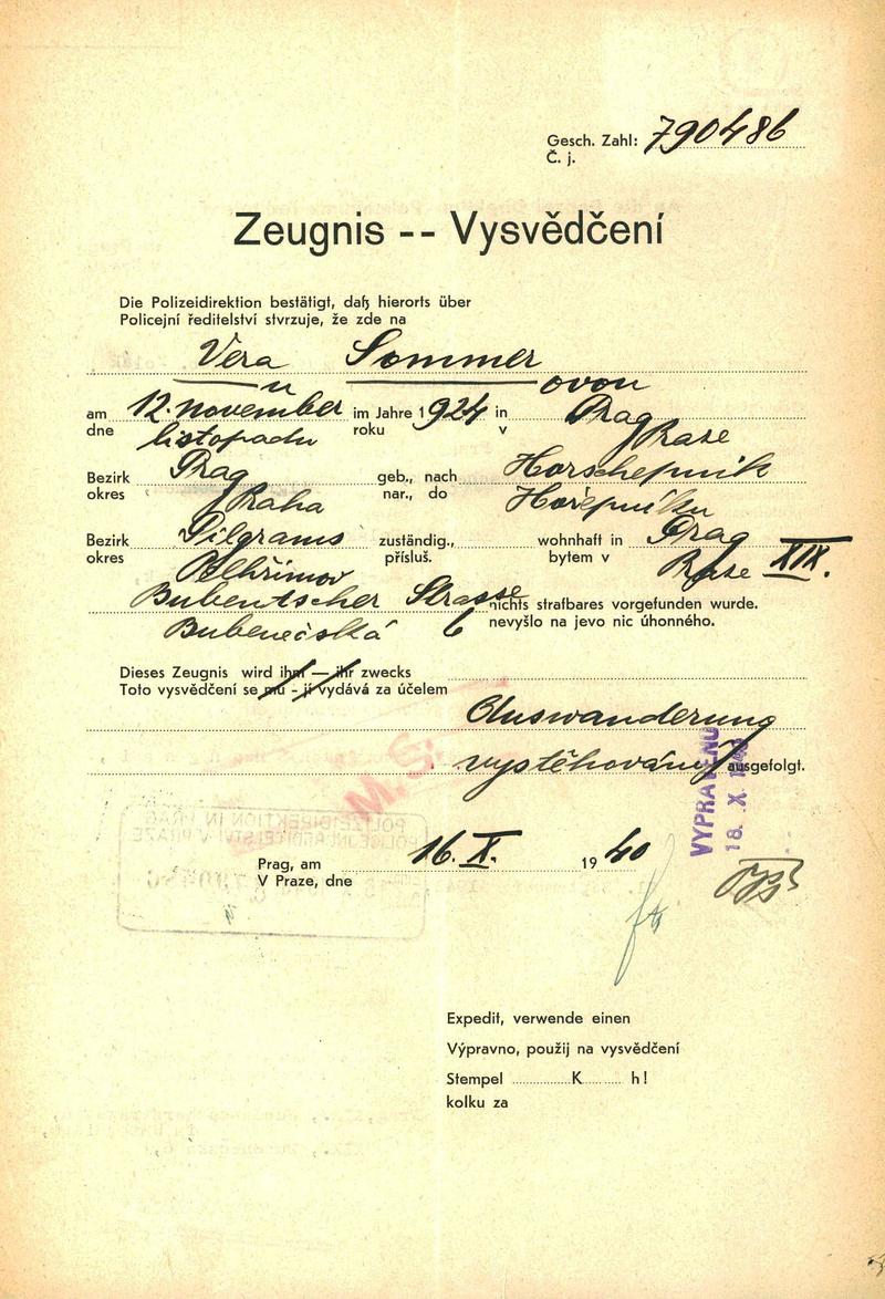 Národní archiv Praha > Policejní ředitelství v Praze > 1941-1950 > S > Sommerová Věra