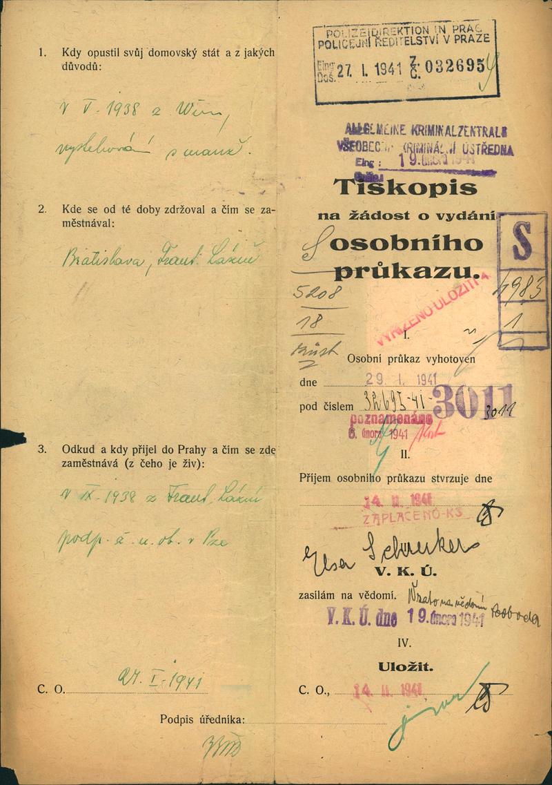 Národní archiv Praha > Policejní ředitelství v Praze > 1941-1950 > S > Schreckerová Eliška