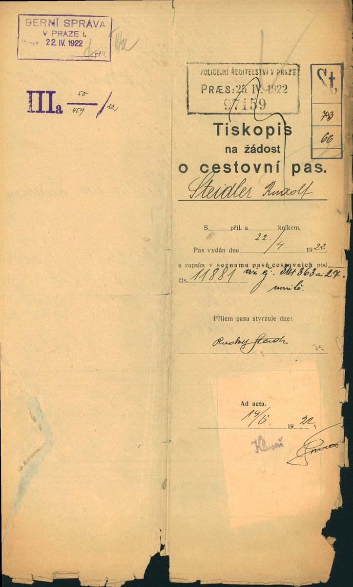 Národní archiv Praha > Policejní ředitelství v Praze > 1941-1950 > S > Steidler Rudolf