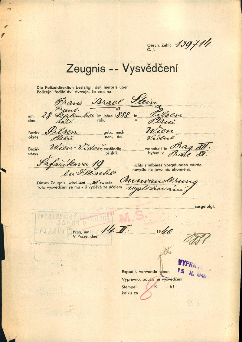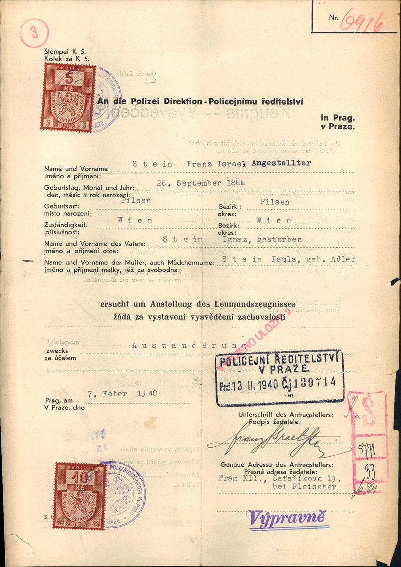 Národní archiv Praha > Policejní ředitelství v Praze > 1941-1950 > S > Stein František