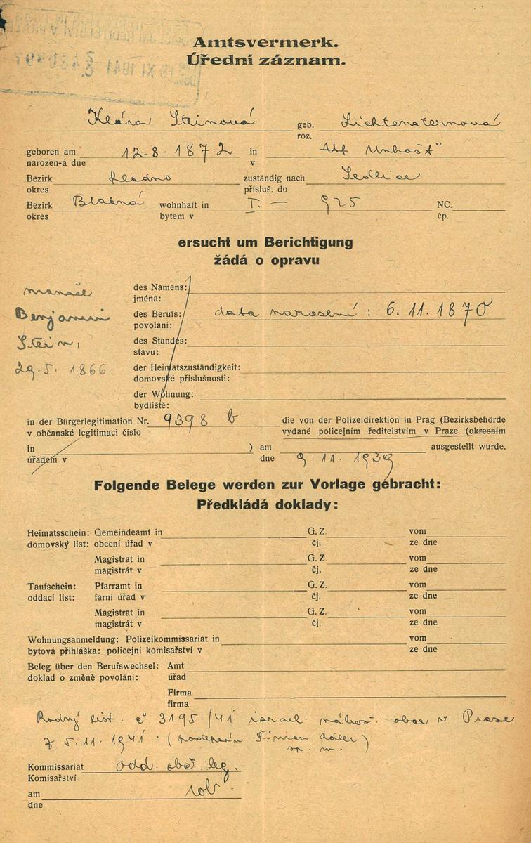 Národní archiv Praha > Policejní ředitelství v Praze > 1941-1950 > S > Steinová Klára