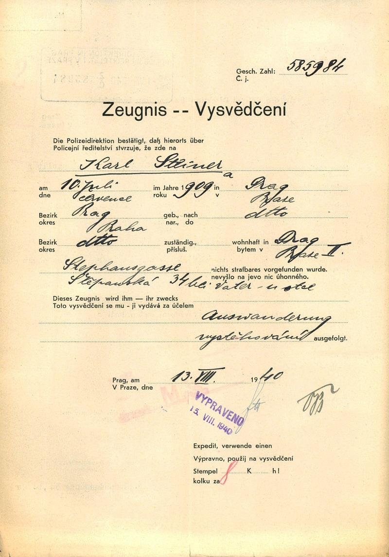 Národní archiv Praha > Policejní ředitelství v Praze > 1941-1950 > S > Steiner Karel