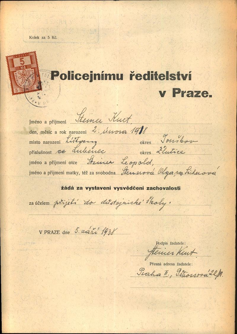 Národní archiv Praha > Policejní ředitelství v Praze > 1941-1950 > S > Steiner Kurt