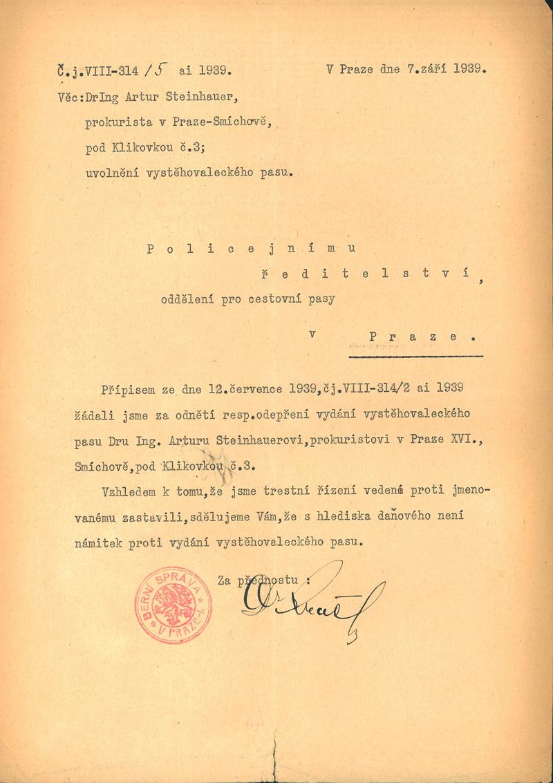 Národní archiv Praha > Policejní ředitelství v Praze > 1941-1950 > S > Steinhauer Artur