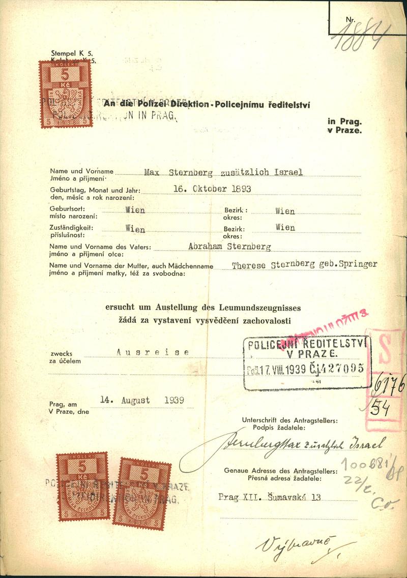Národní archiv Praha > Policejní ředitelství v Praze > 1941-1950 > S > Sternberg Max