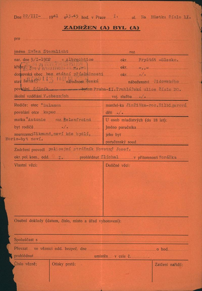 Sternlicht Evžen: NEZPRACOVÁNO