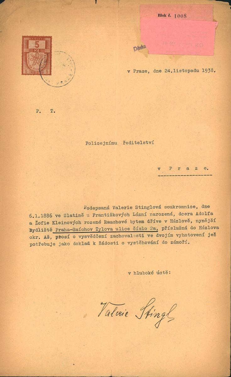 Národní archiv Praha > Policejní ředitelství v Praze > 1941-1950 > S > Stinglová Valerie