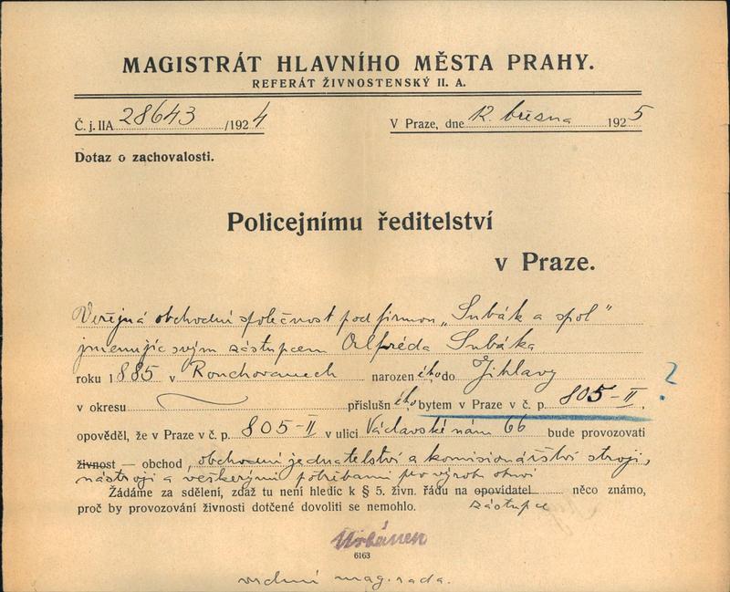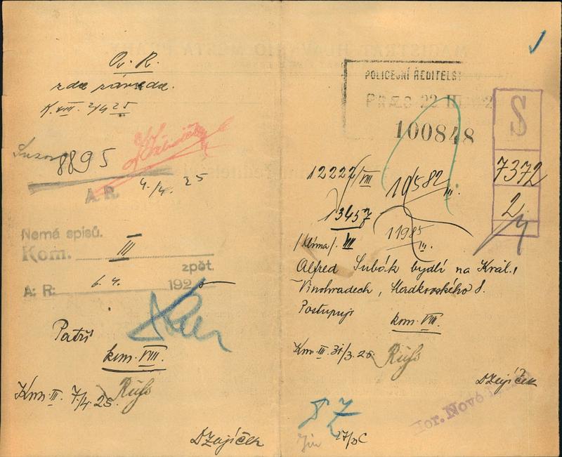 Národní archiv Praha > Policejní ředitelství v Praze > 1941-1950 > S > Subak Alfred