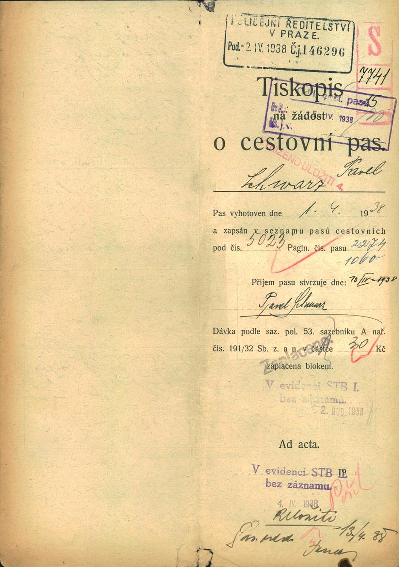 Národní archiv Praha > Policejní ředitelství v Praze > 1941-1950 > S > Schwarz Pavel