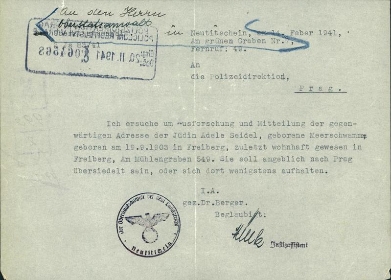 Národní archiv Praha > Policejní ředitelství v Praze > 1941-1950 > S > Seidlová Adéla