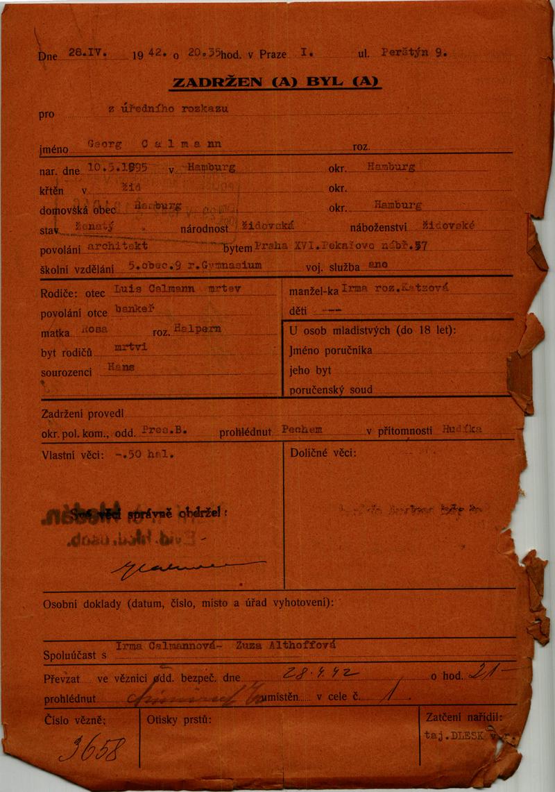Národní archiv Praha > Policejní ředitelství v Praze > 1931-1940 > C > Calman Jiří