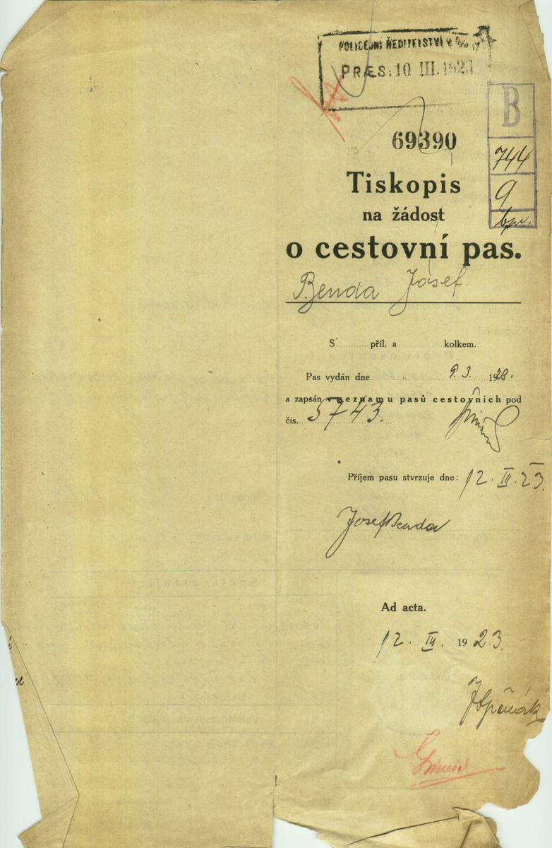 Benda Josef: NEZPRACOVÁNO