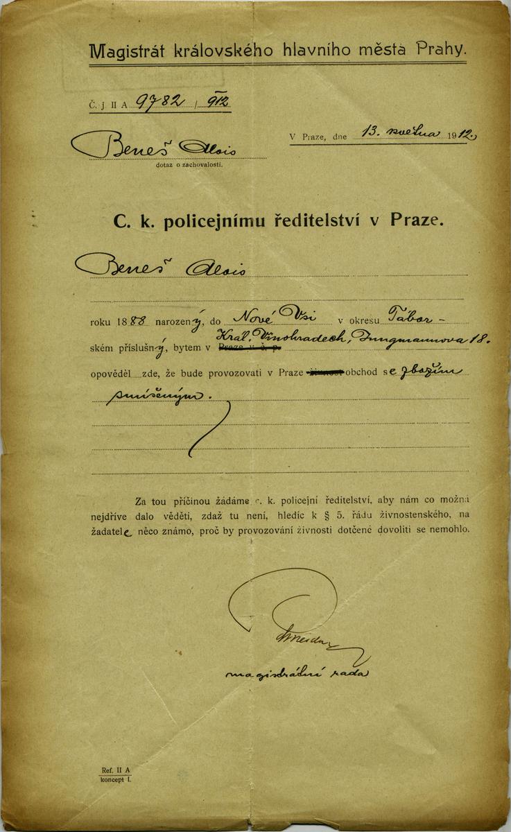 Beneš Alois: NEZPRACOVÁNO
