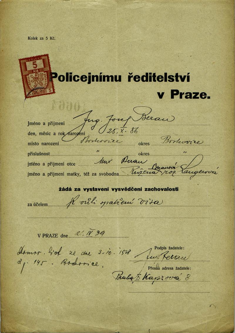 Národní archiv Praha > Policejní ředitelství v Praze > 1941-1950 > B > Beran Josef