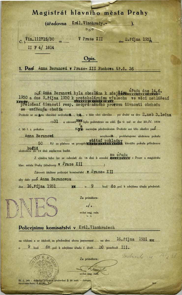 Národní archiv Praha > Policejní ředitelství v Praze > 1941-1950 > B > Beranová Anna