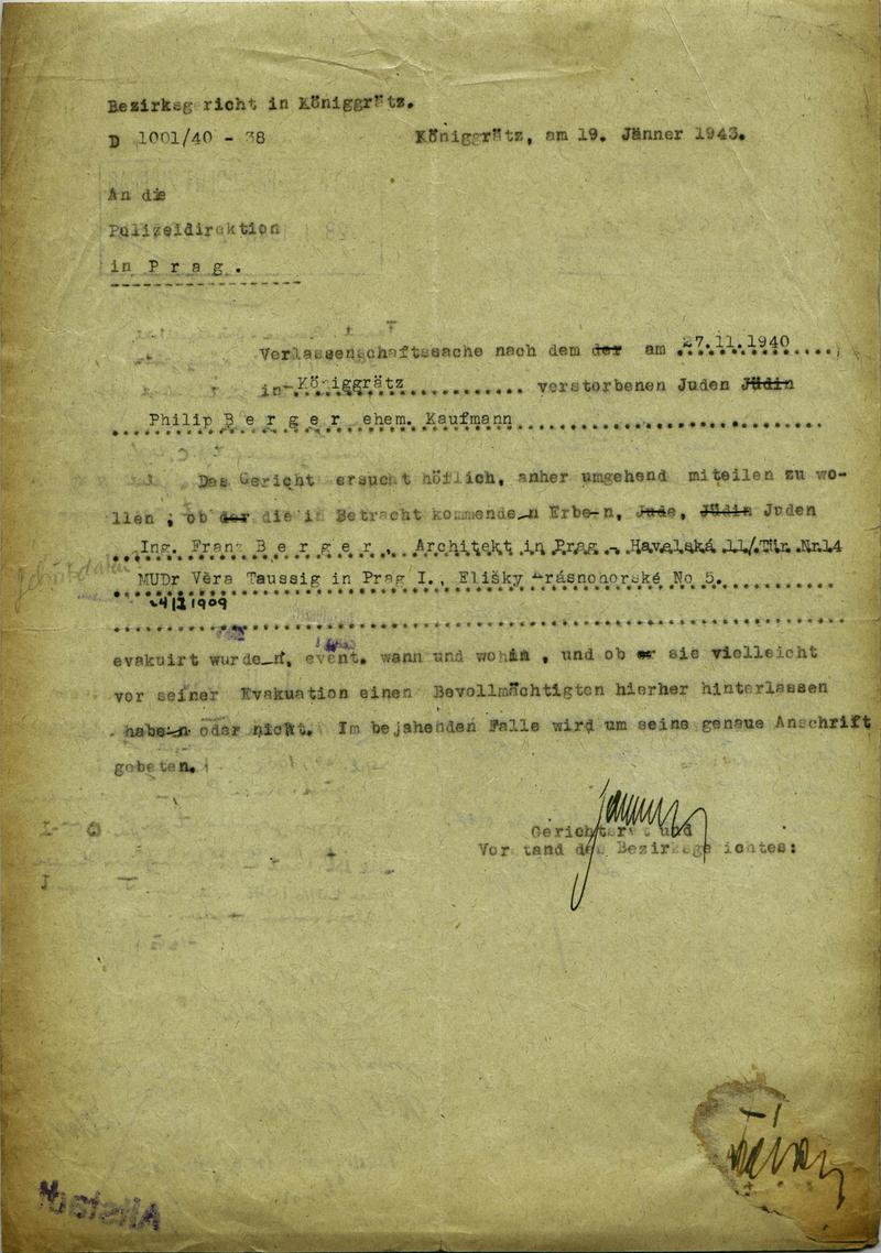 Pro publikaci je nutné kontaktovat Národní archiv v Praze, kde je uložen originál dokumentu. Dokument byl digitalizován Institutem Terezínské iniciativy v rámci projektu Terezínské album.