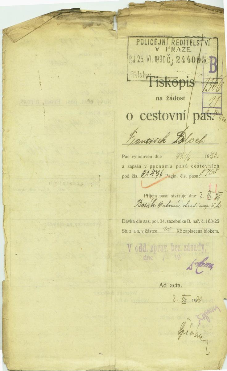 Národní archiv Praha > Policejní ředitelství v Praze > 1941-1950 > B > Bloch František