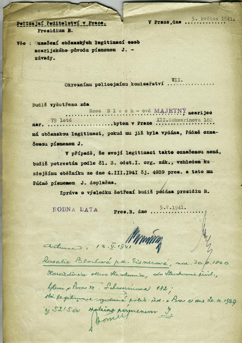 Národní archiv Praha > Policejní ředitelství v Praze > 1941-1950 > B > Blochová Růžena