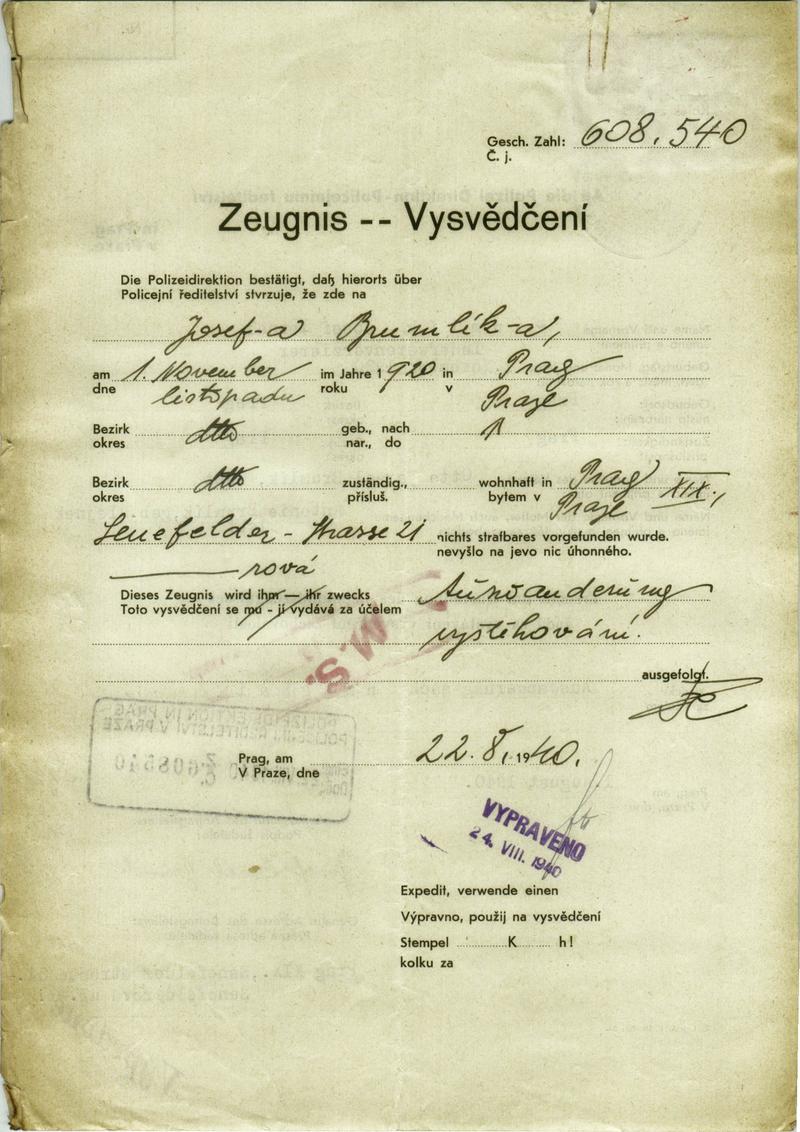 Národní archiv Praha > Policejní ředitelství v Praze > 1941-1950 > B > Brumlík Josef