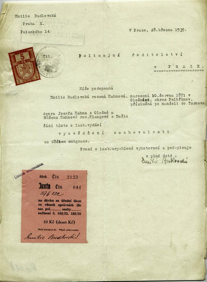 Národní archiv Praha > Policejní ředitelství v Praze > 1941-1950 > B > Budlovská Emilie