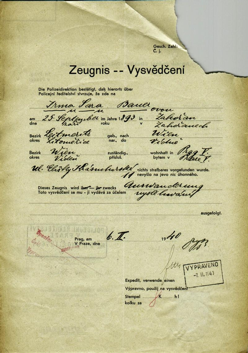 Národní archiv Praha > Policejní ředitelství v Praze > 1941-1950 > B > Bauerová Irma