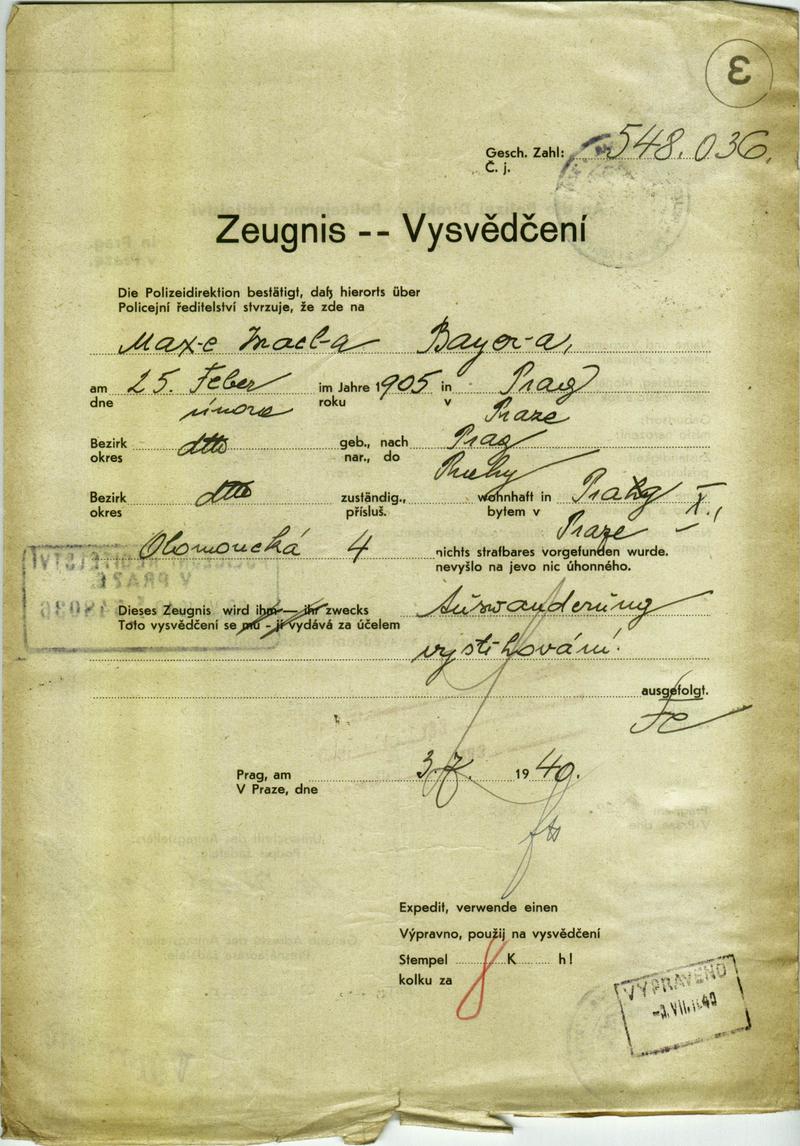 Národní archiv Praha > Policejní ředitelství v Praze > 1941-1950 > B > Bayer Max