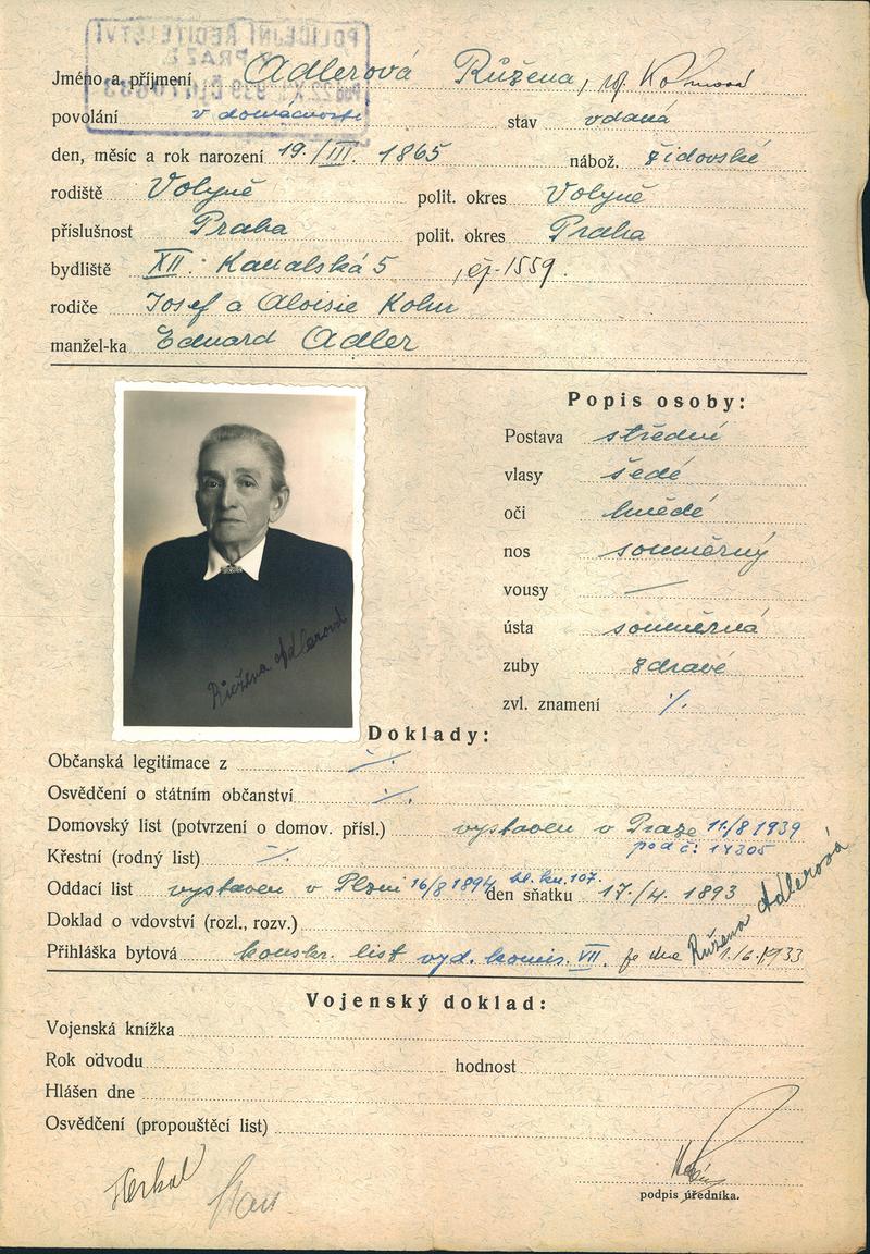 Národní archiv Praha > Policejní ředitelství v Praze > 1931-1940 > A > Adlerová Růžena