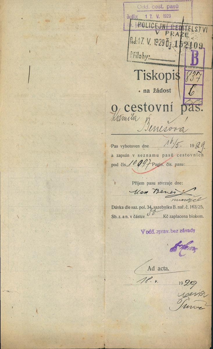 Národní archiv Praha > Policejní ředitelství v Praze > 1931-1940 > B > Benešová Kamila