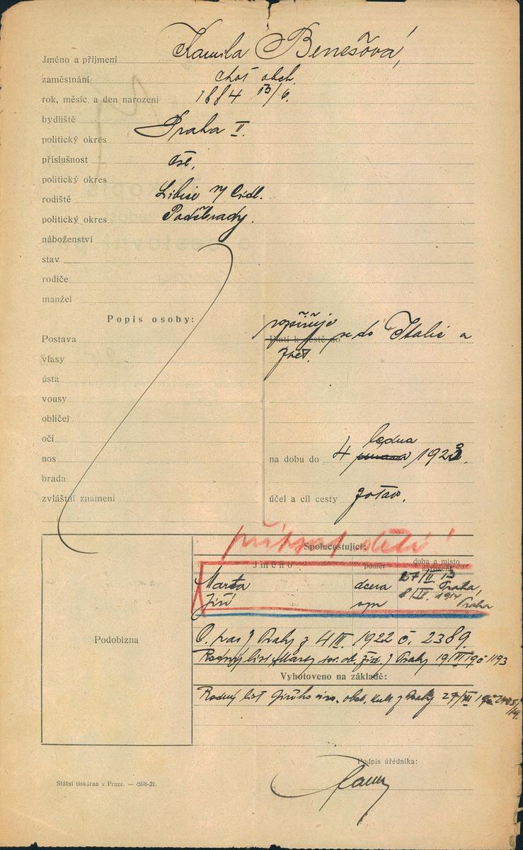 Národní archiv Praha > Policejní ředitelství v Praze > 1931-1940 > B > Benešová Kamila