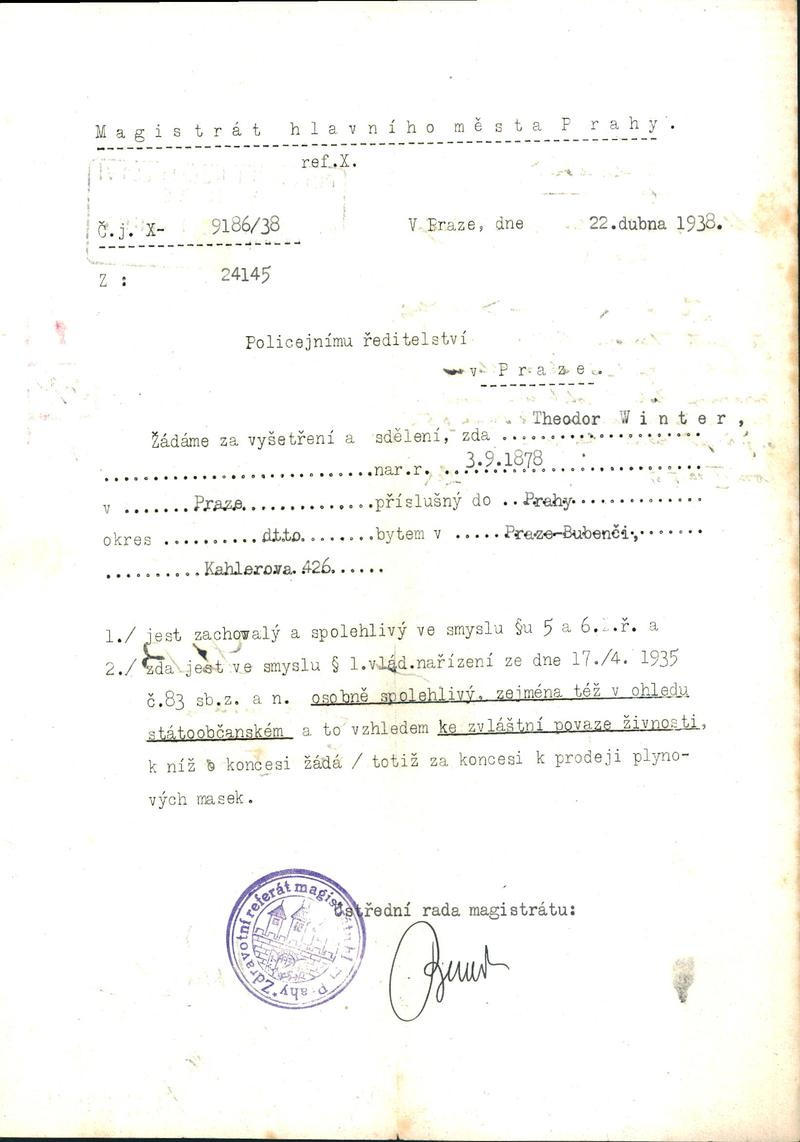 Národní archiv Praha > Policejní ředitelství v Praze > 1931-1940 > W > Winter Bohdan