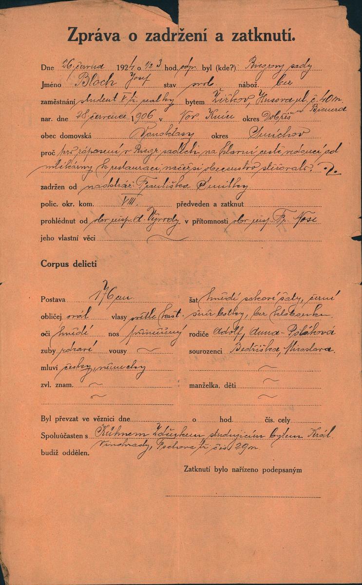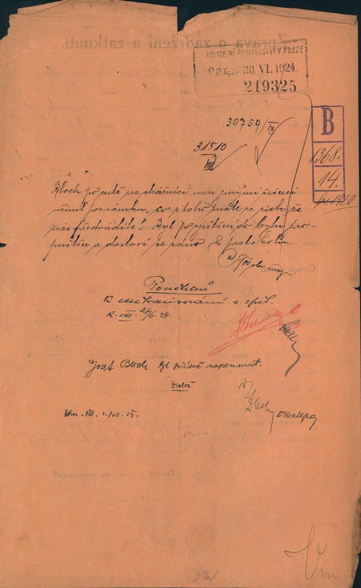 Národní archiv Praha > Policejní ředitelství v Praze > 1921-1930 > B > Bloch Josef