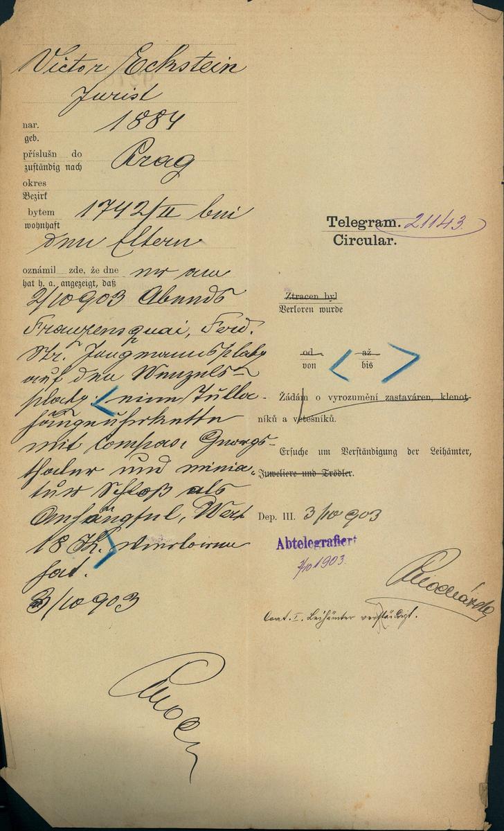 Národní archiv Praha > Policejní ředitelství v Praze > 1921-1930 > E > Eckstein Viktor