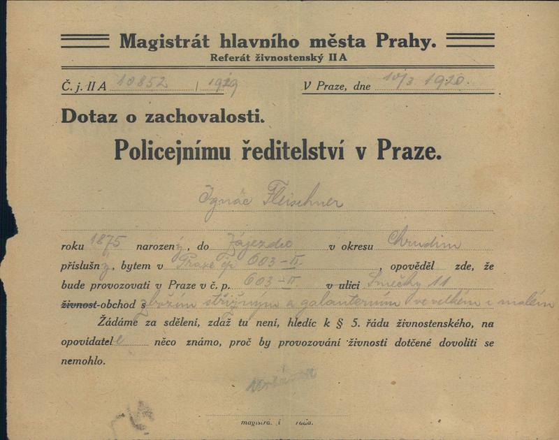 Národní archiv Praha > Policejní ředitelství v Praze > 1921-1930 > F > Fleischner Ignatz