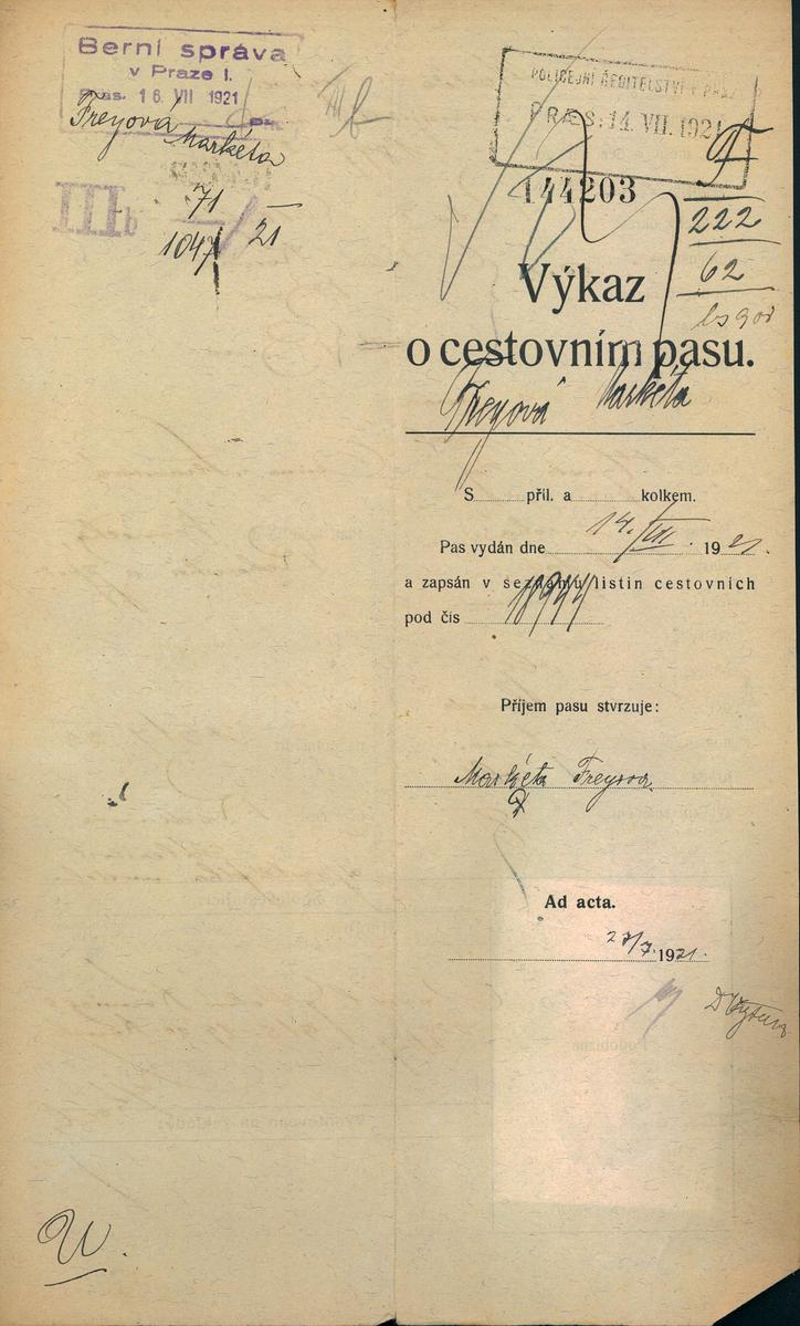 Národní archiv Praha > Policejní ředitelství v Praze > 1921-1930 > P > Popperová Markéta