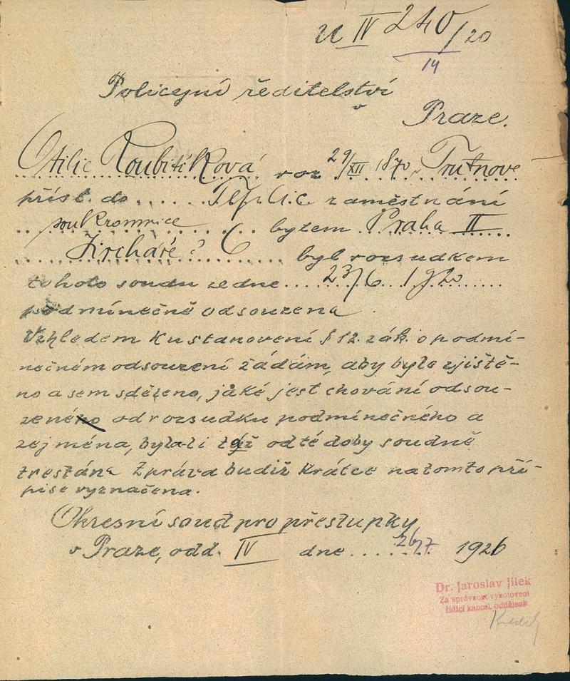 Roubičková Otilie: NEZPRACOVÁNO