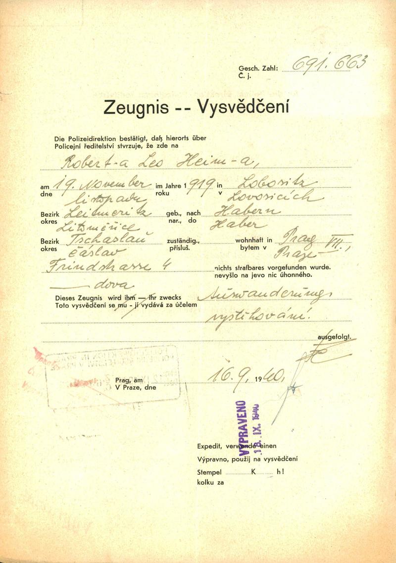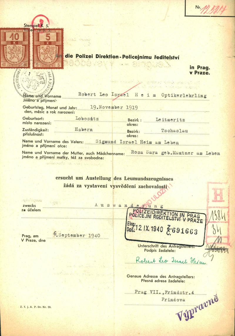 Národní archiv Praha > Policejní ředitelství v Praze > 1941-1950 > H > Heim Robert