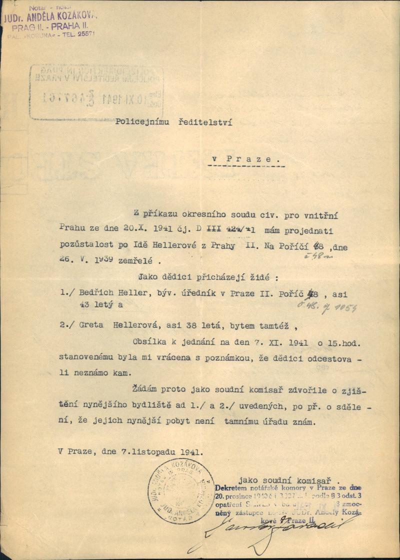 Národní archiv Praha > Policejní ředitelství v Praze > 1941-1950 > H > Heller Bedřich