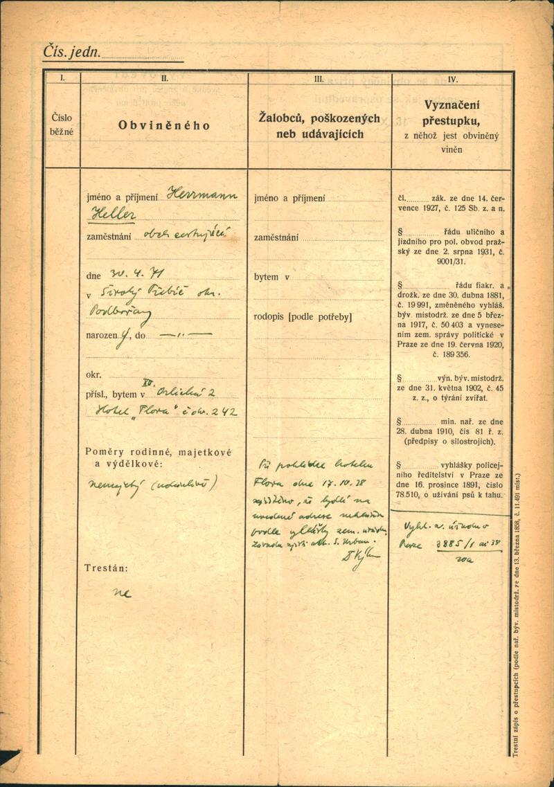 Národní archiv Praha > Policejní ředitelství v Praze > 1941-1950 > H > Heller Heřman