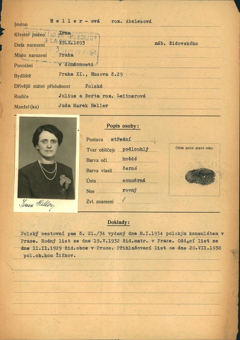 Národní archiv Praha > Policejní ředitelství v Praze > 1941-1950 > H > Hellerová Irma