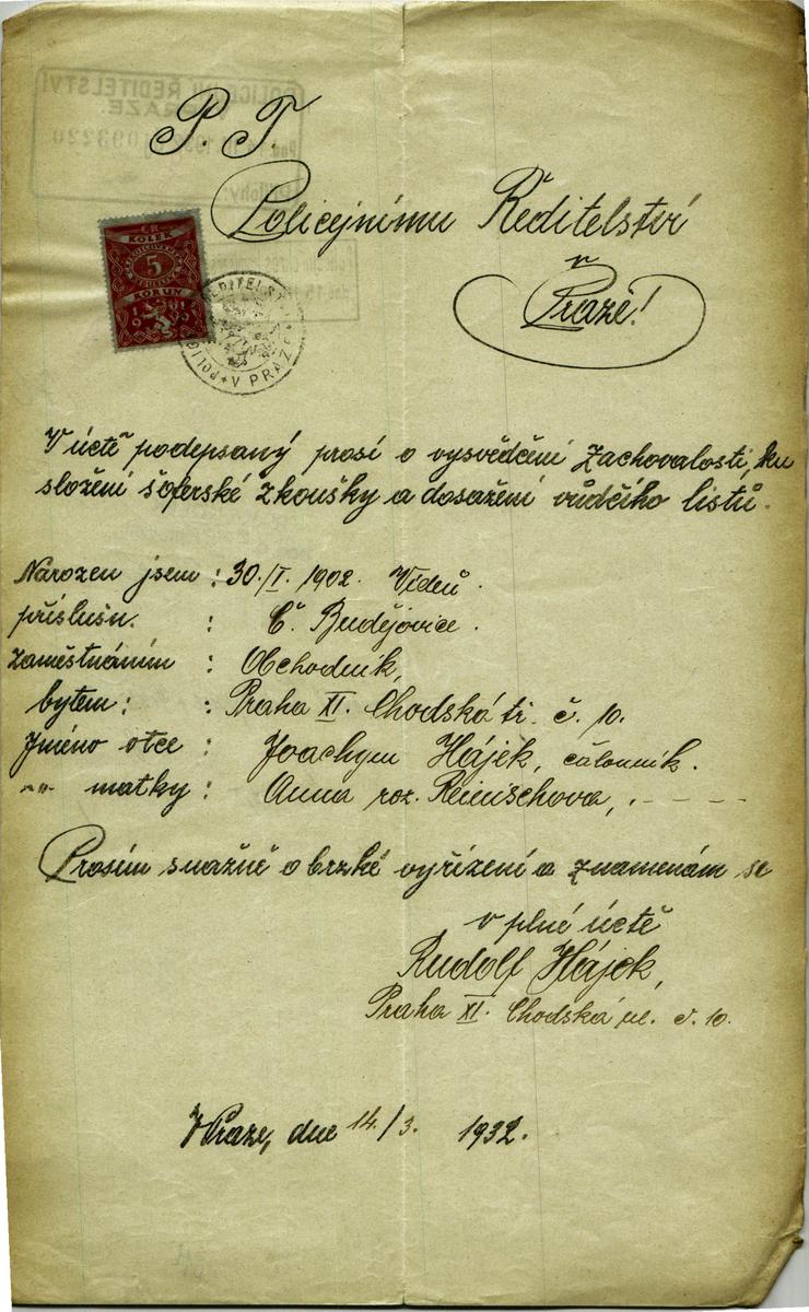 Národní archiv Praha > Policejní ředitelství v Praze > 1941-1950 > H > Hájek Rudolf