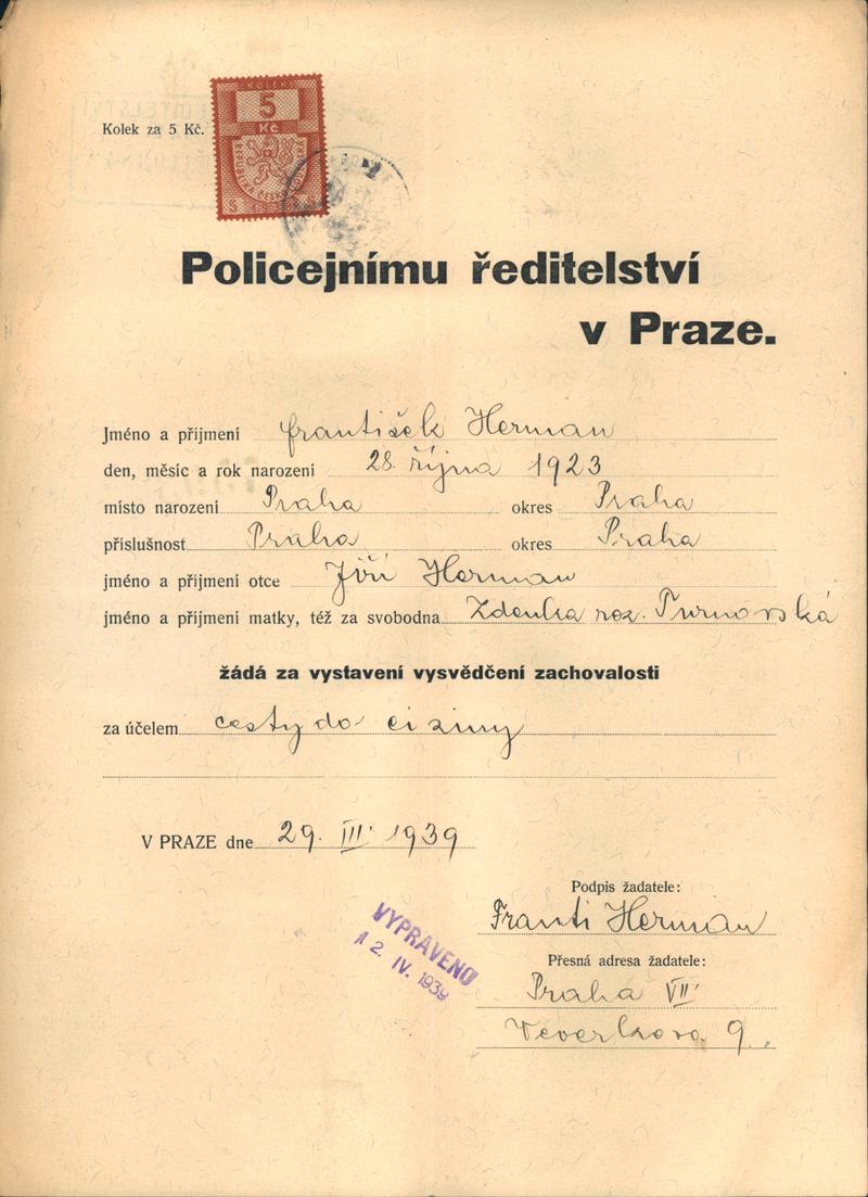 Národní archiv Praha > Policejní ředitelství v Praze > 1941-1950 > H > Hermann František