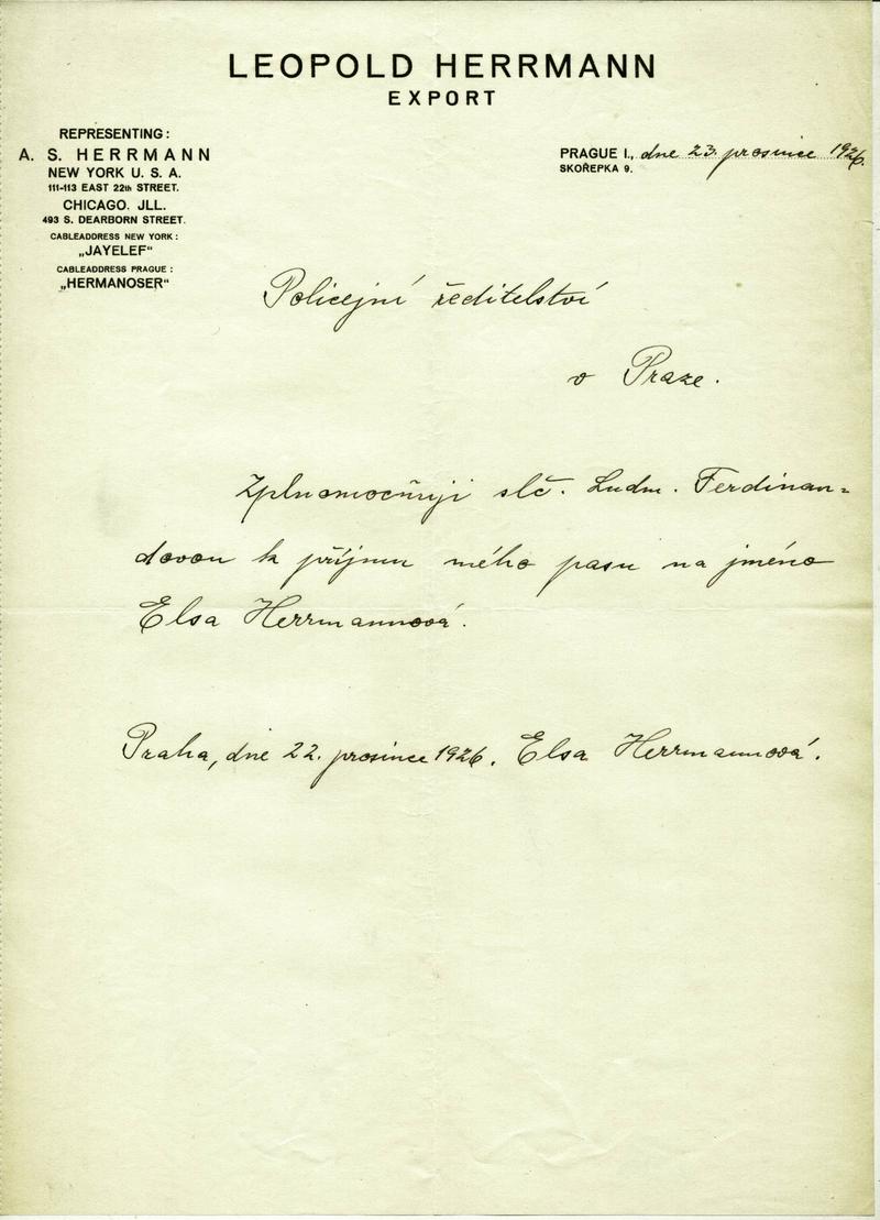 Herrmannová Eliška: Plná moc k vyzvednutí cestovního pasu