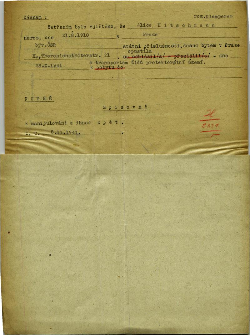 Hitschmannová Alice Malvína: NEZPRACOVÁNO