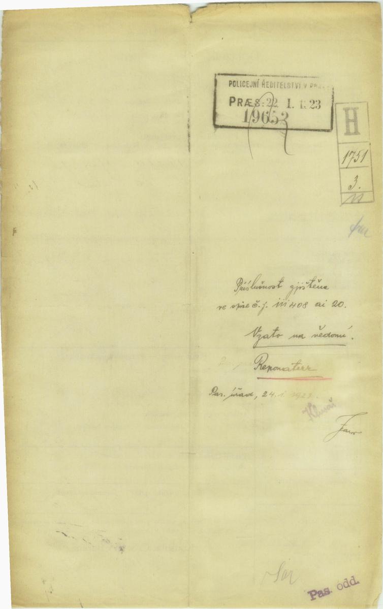 Národní archiv Praha > Policejní ředitelství v Praze > 1941-1950 > H > Hofmann Vilém