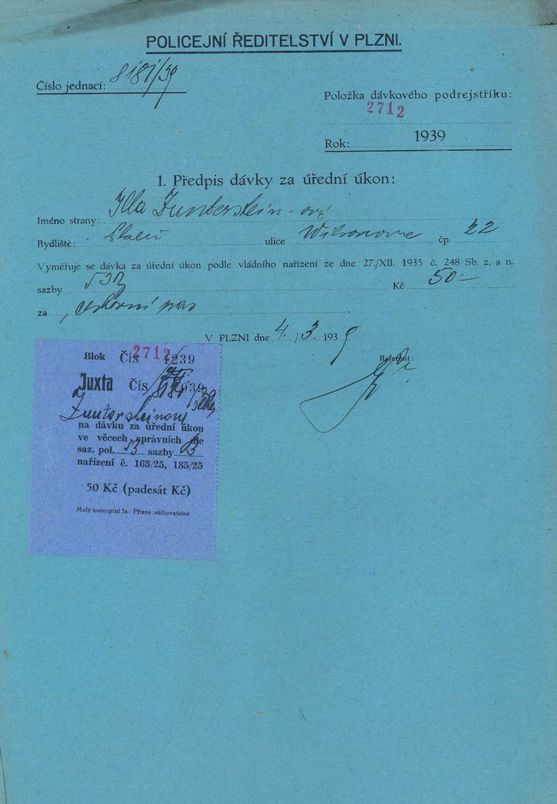 Státní oblastní archiv v Plzni > Policejní ředitelství Plzeň > 1918-1951 > C > Zuntersteinová Illa