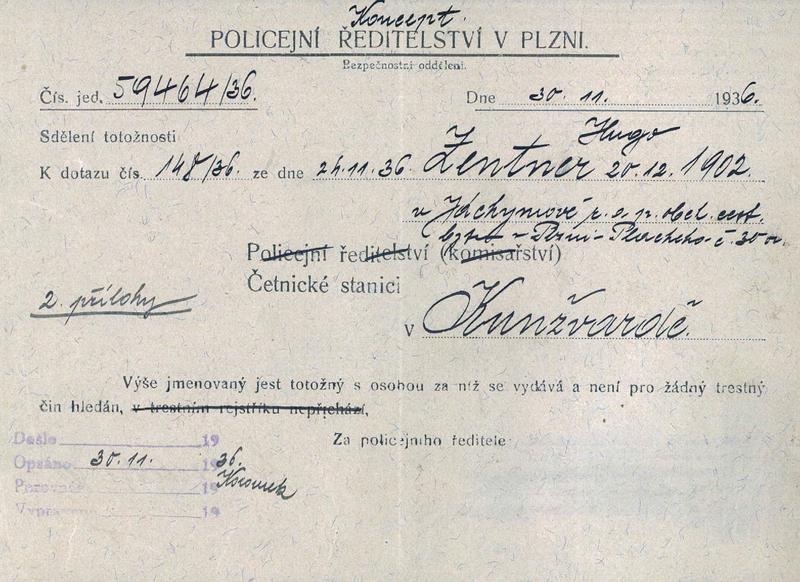 Státní oblastní archiv v Plzni > Policejní ředitelství Plzeň > 1918-1951 > C > Zentner Hugo