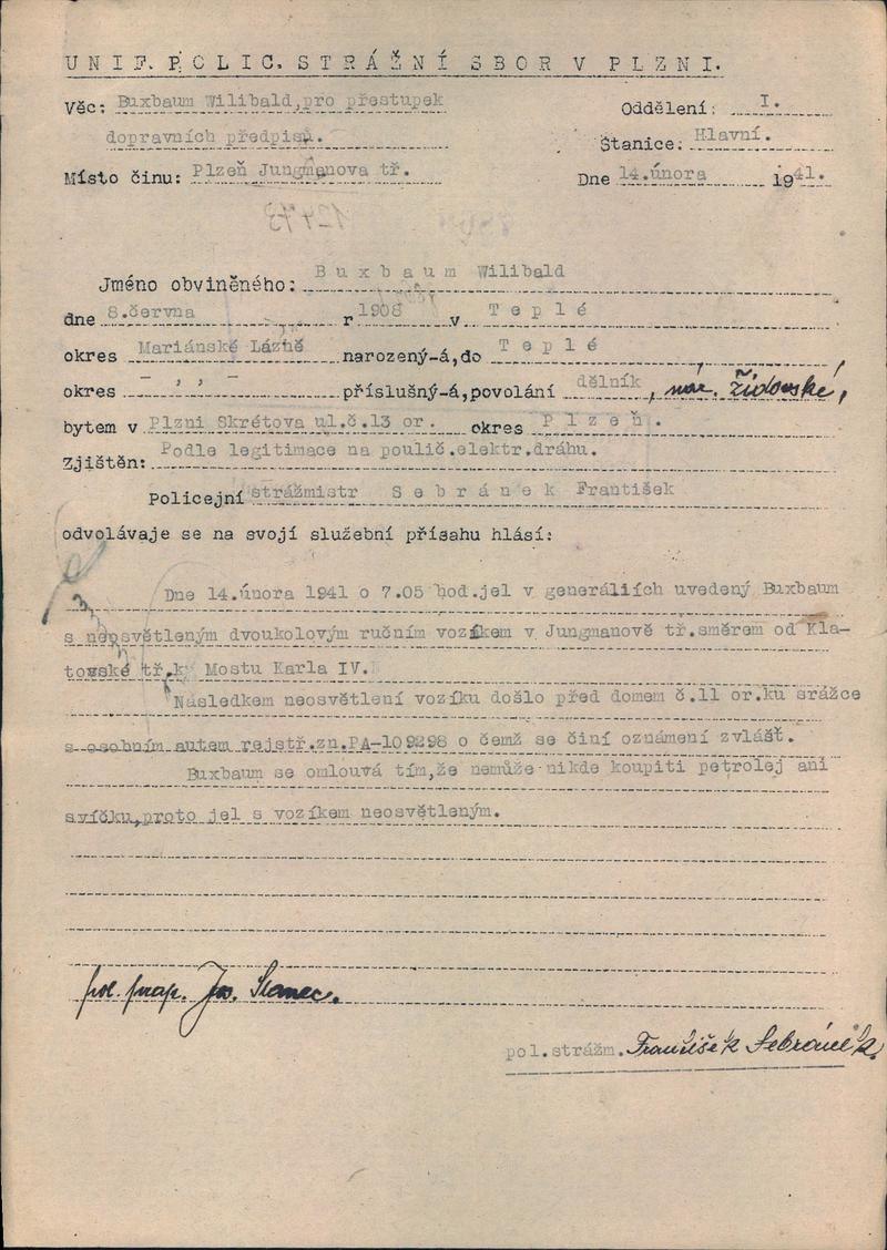 Státní oblastní archiv v Plzni > Policejní ředitelství Plzeň > 1918-1951 > B > Buxbaum Willibald