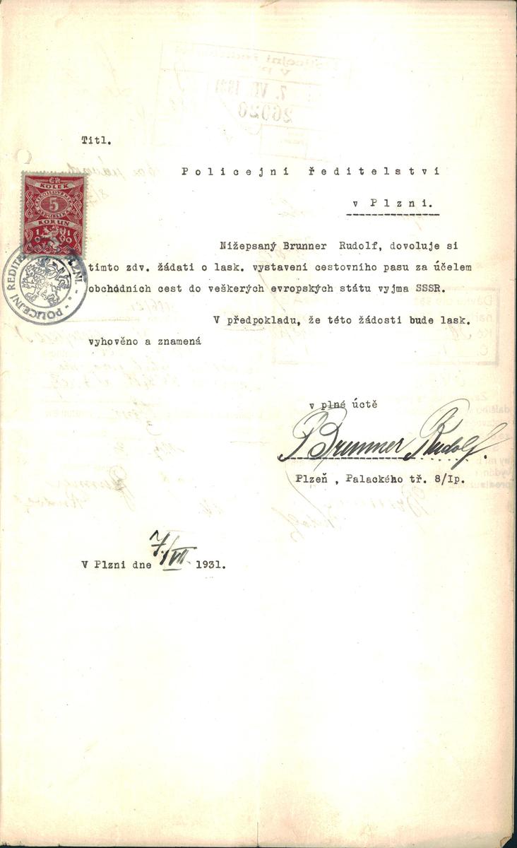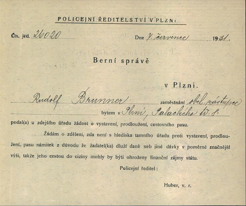 Státní oblastní archiv v Plzni > Policejní ředitelství Plzeň > 1918-1951 > B > Brunner Rudolf
